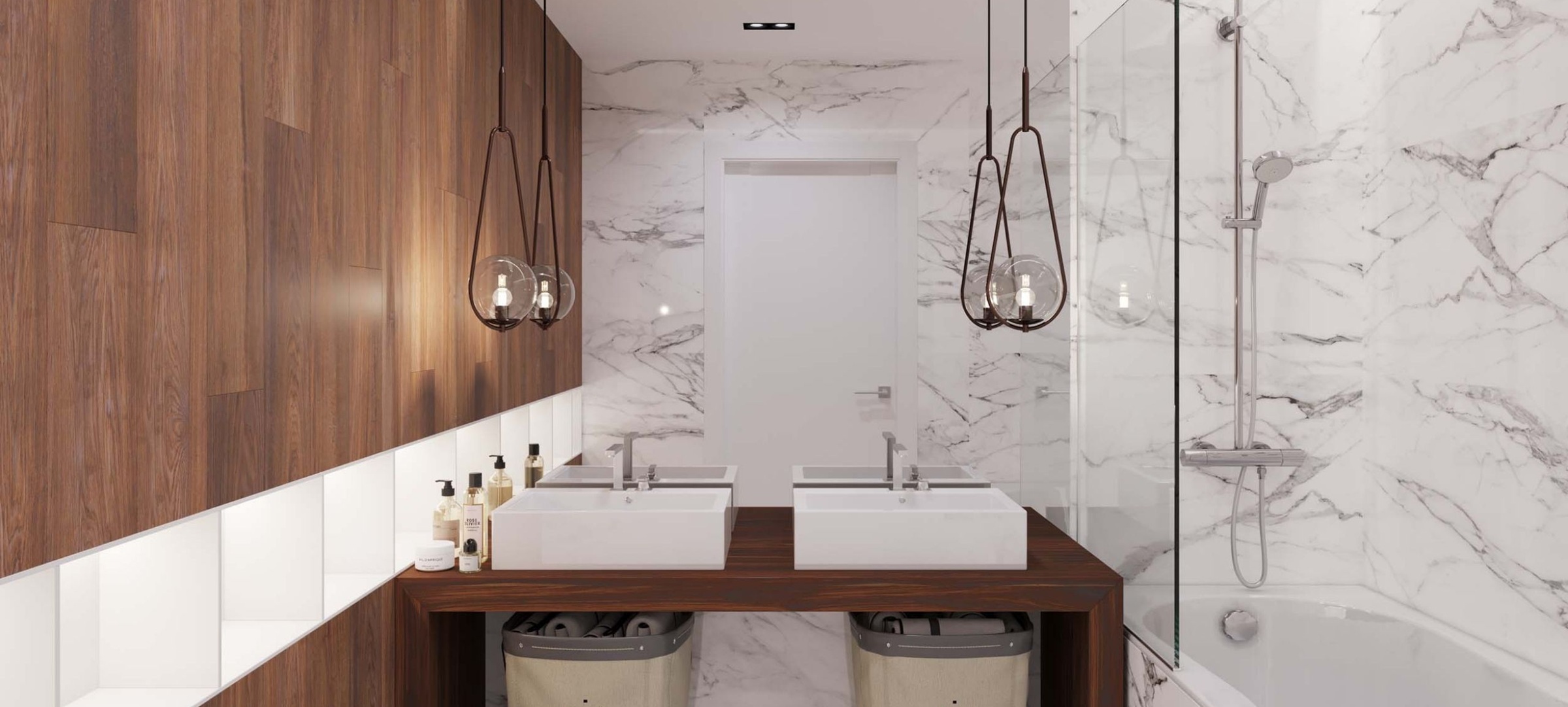 А в нашей еженедельной подборке мы подготовили несколько готовых примеров дизайна ванных комнат из разных стран, чтобы было удобнее выбирать: