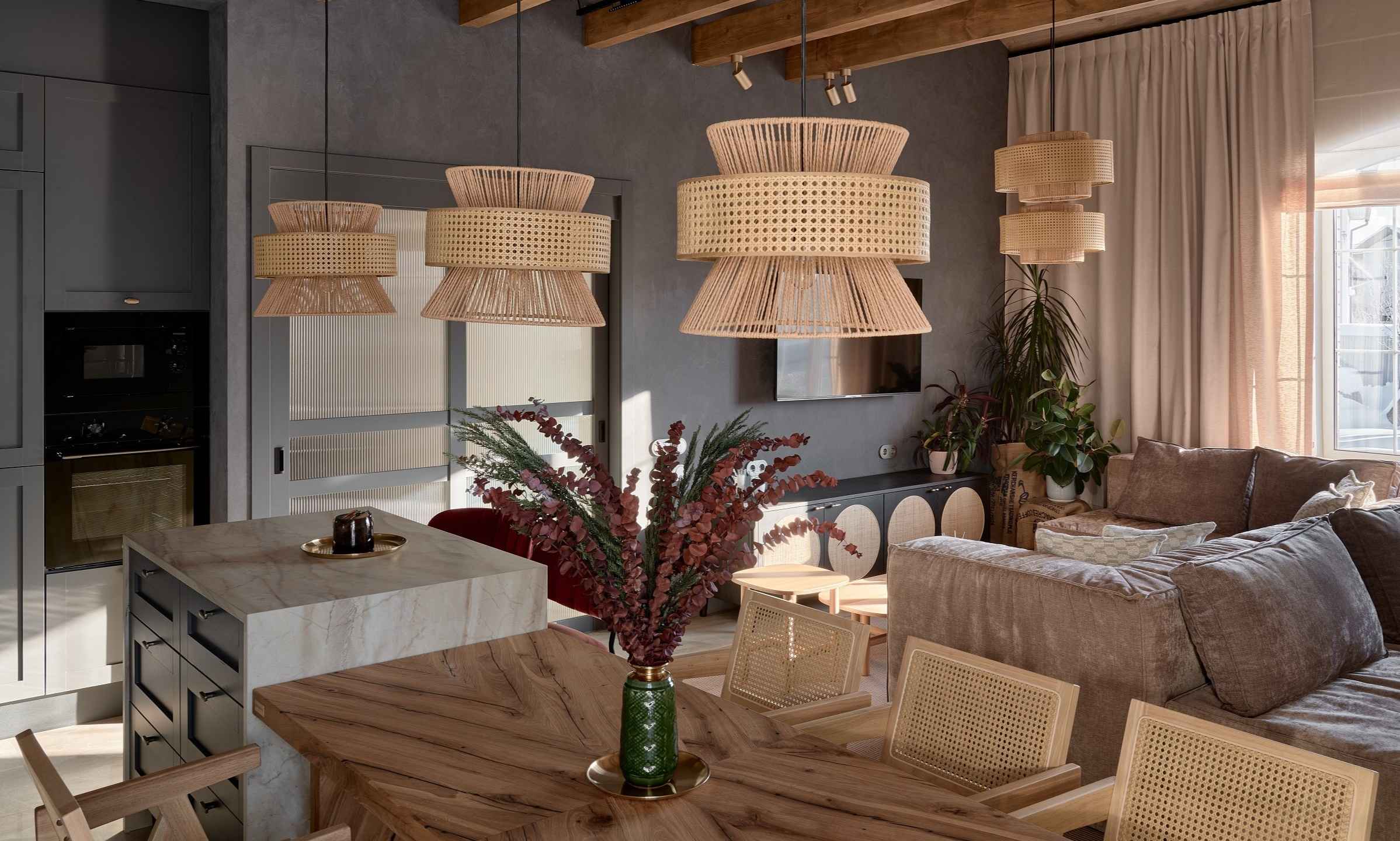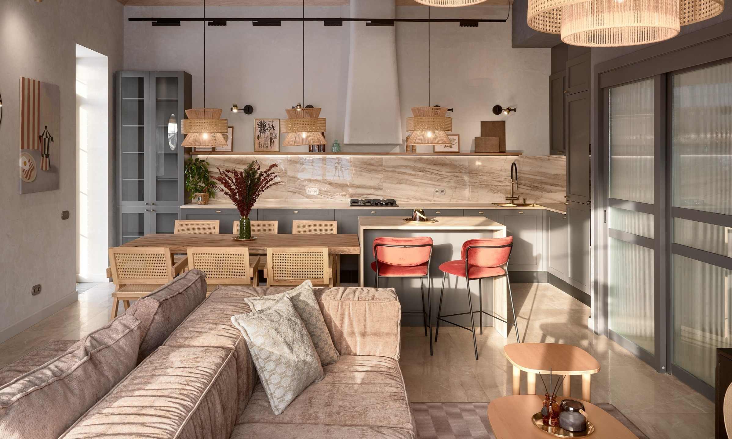 Кухня-гостиная с двумя островами